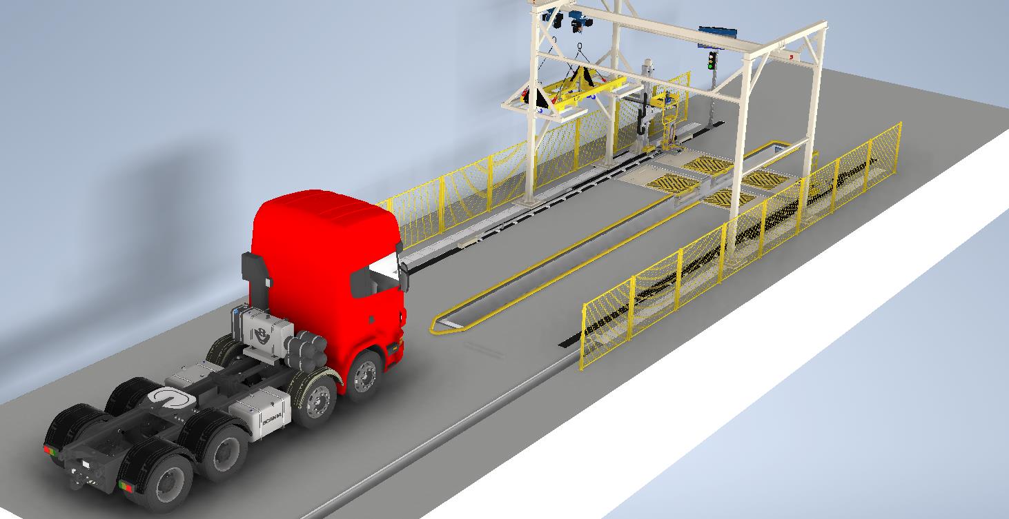 4.1 套立柱托架:车辆到位时,驾驶员不下车拿取 OBD,且托架不能影响车辆正常 通过性;检测完成后,保证驾驶员不下车可放回 OBD。托架应位于试验台左侧(行驶方向),靠近前桥,方向盘平衡器放置其上。手动操作装置能够调整至车辆宽度(y-向), 并在高度(z-向)自动调整,调试员可以通过车辆打开的侧窗方便地抓取方向盘平衡器 ;